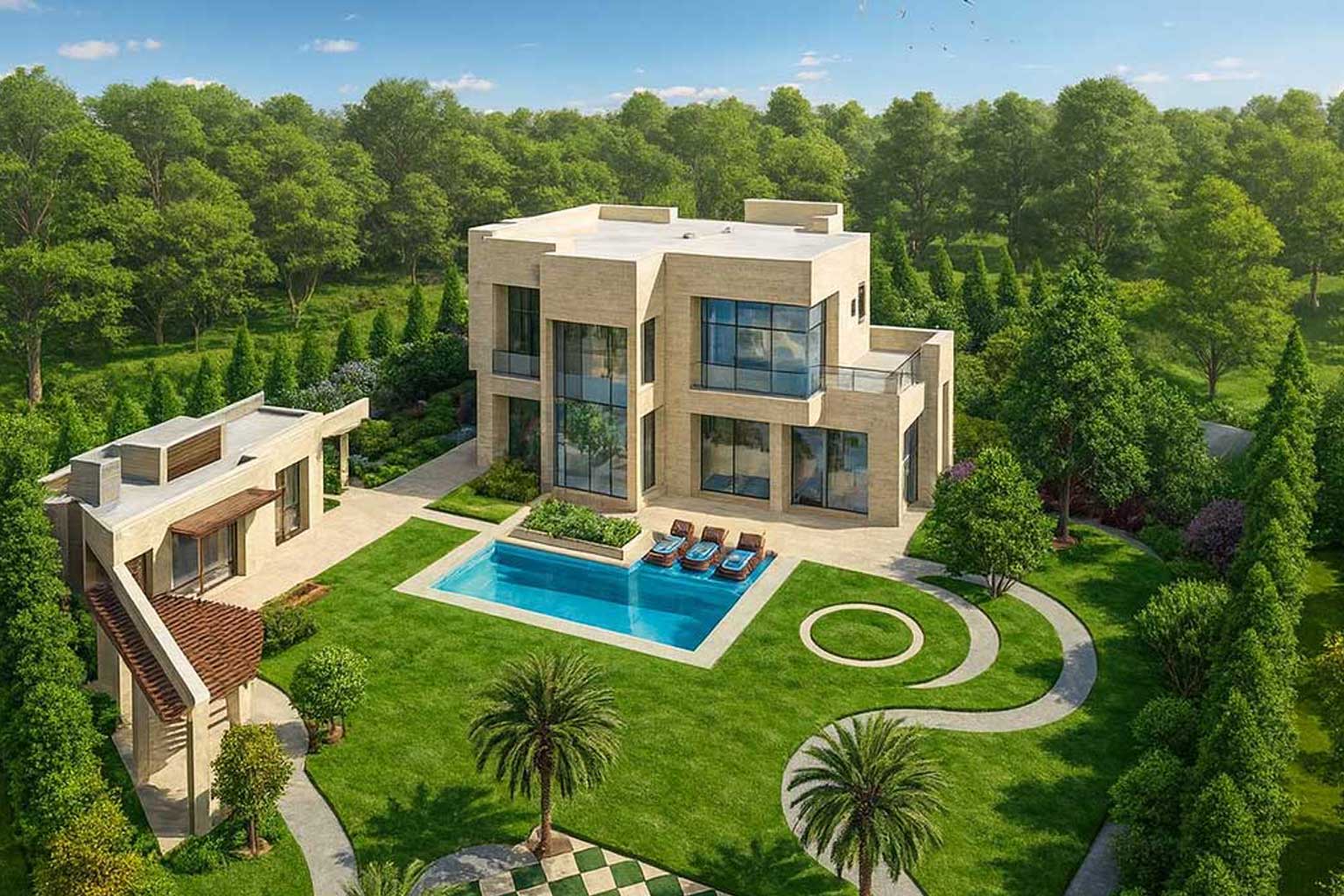 Mahmoud Ekrayem Villa is a contemporary private residence set within a generous landscaped plot on the edge of a forested area. The main two-storey volume is composed of clean, interlocking…
