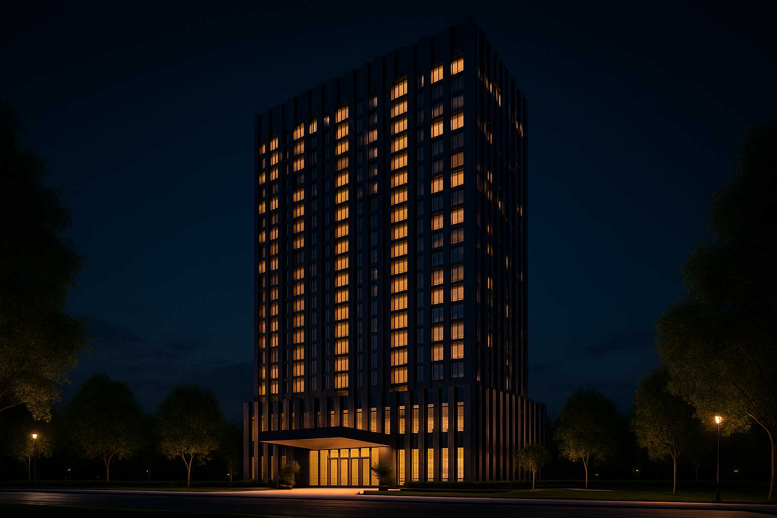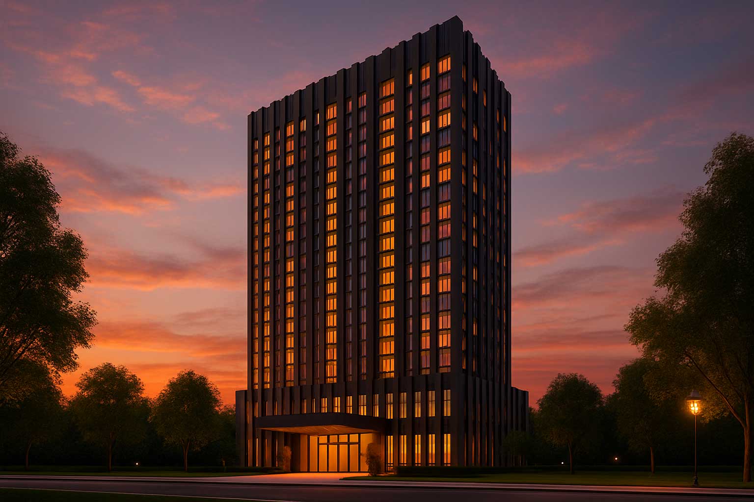 Housari Corp provided integrated engineering and technical support, including structural design for the tower and wings, curtain-wall and façade engineering, MEP systems, fire and life safety coordination, and value engineering to balance investment, operational efficiency, and long-term durability.