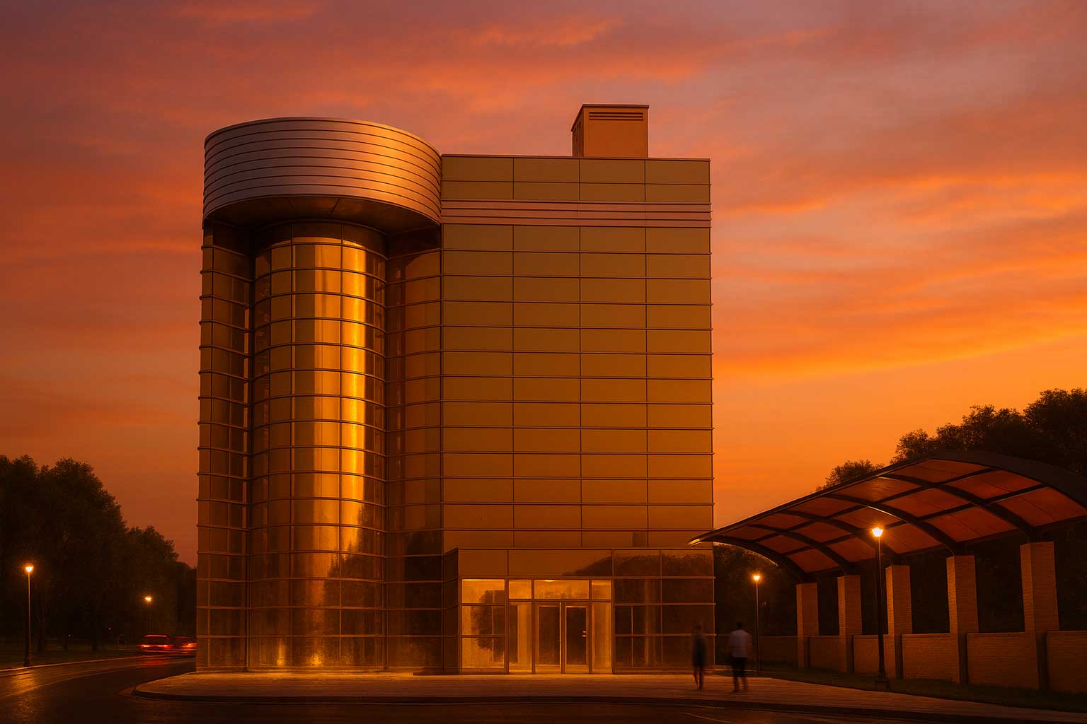 The ground floor is organized as a transparent entrance lobby and prime retail frontage, with clear visual connectivity to the drop-off canopy on the side. Upper floors are planned as flexible open plates that can accommodate a variety of retail, showroom, or office tenants, served by central cores and optimized HVAC zoning. The structural grid is coordinated with the curtain-wall mullions to minimize visual clutter and simplify tenant fit-outs. Housari Corp provided integrated engineering, ensuring that façade performance, shading, and mechanical systems support comfortable interiors despite the high-reflectance glass envelope, while maintaining low operating and maintenance costs.