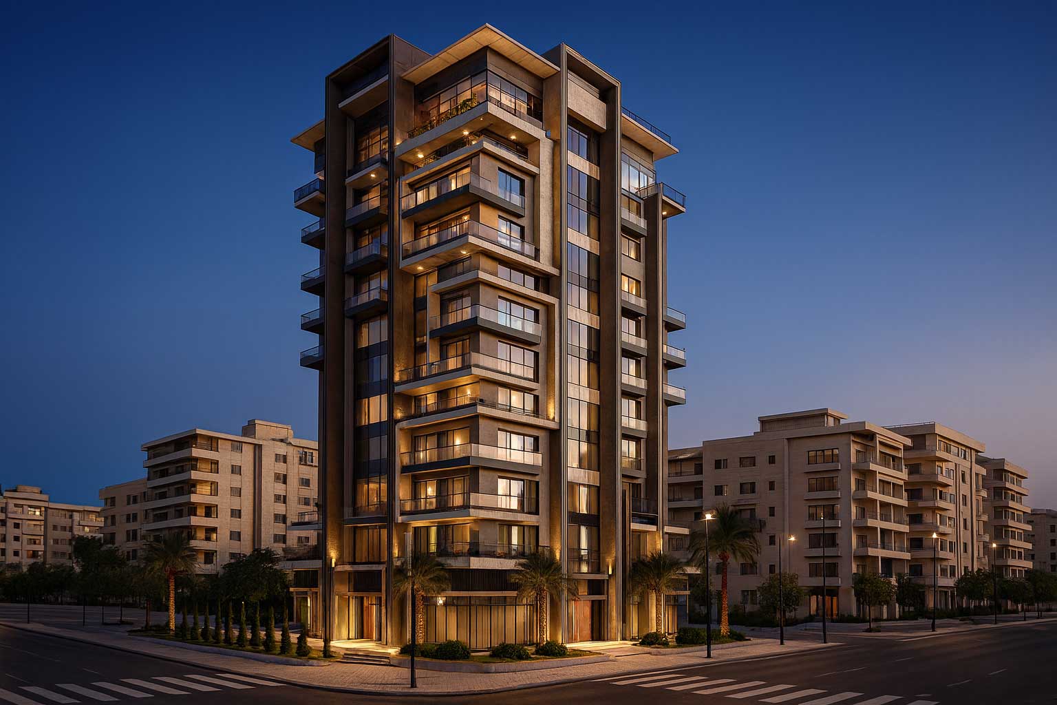 Housari Corp provided integrated architectural and engineering services, coordinating structure, façades, MEP systems, fire and life safety, and vertical transportation to deliver a high-quality residential tower with efficient operation and long-term durability.