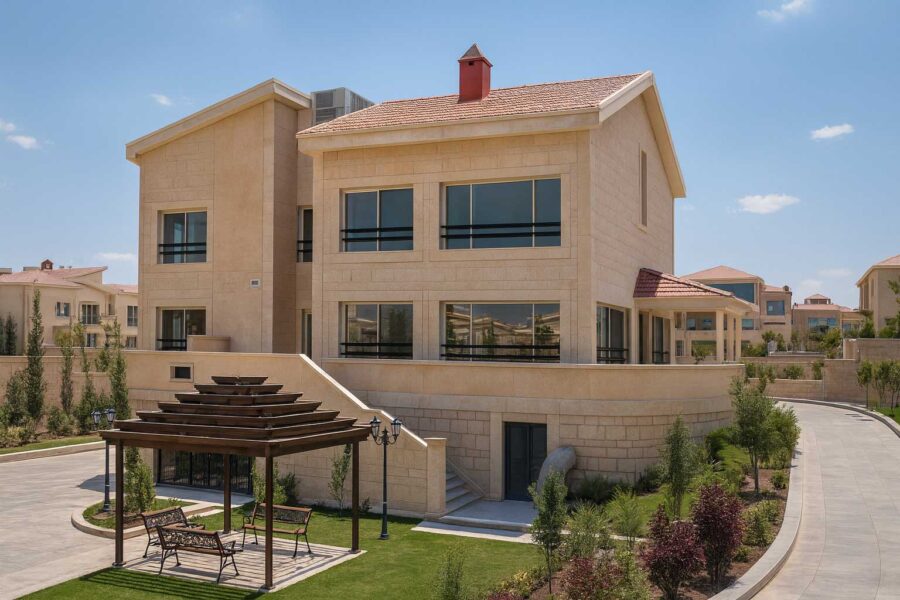 Salah Habib Villa is a contemporary private residence centered around an elevated infinity pool that visually extends into the surrounding garden. The villa is composed of crisp, interlocking volumes, with a strong white frame wrapping the main façade and emphasizing the double-height living area. Vertical fins and large glazed openings create a refined rhythm, offering expansive views to the landscape while providing shading and privacy. The L-shaped plan allows all major spaces to open directly onto the pool terrace, blurring the boundary between indoor living, outdoor lounges, and the water edge.