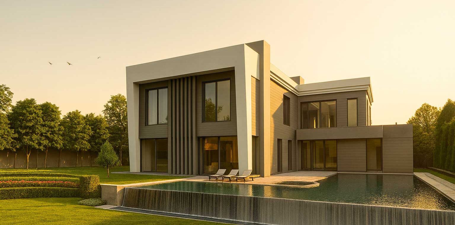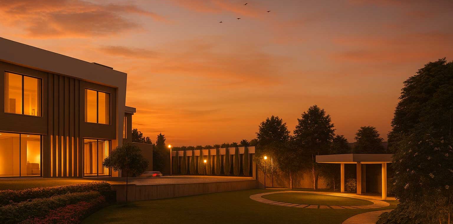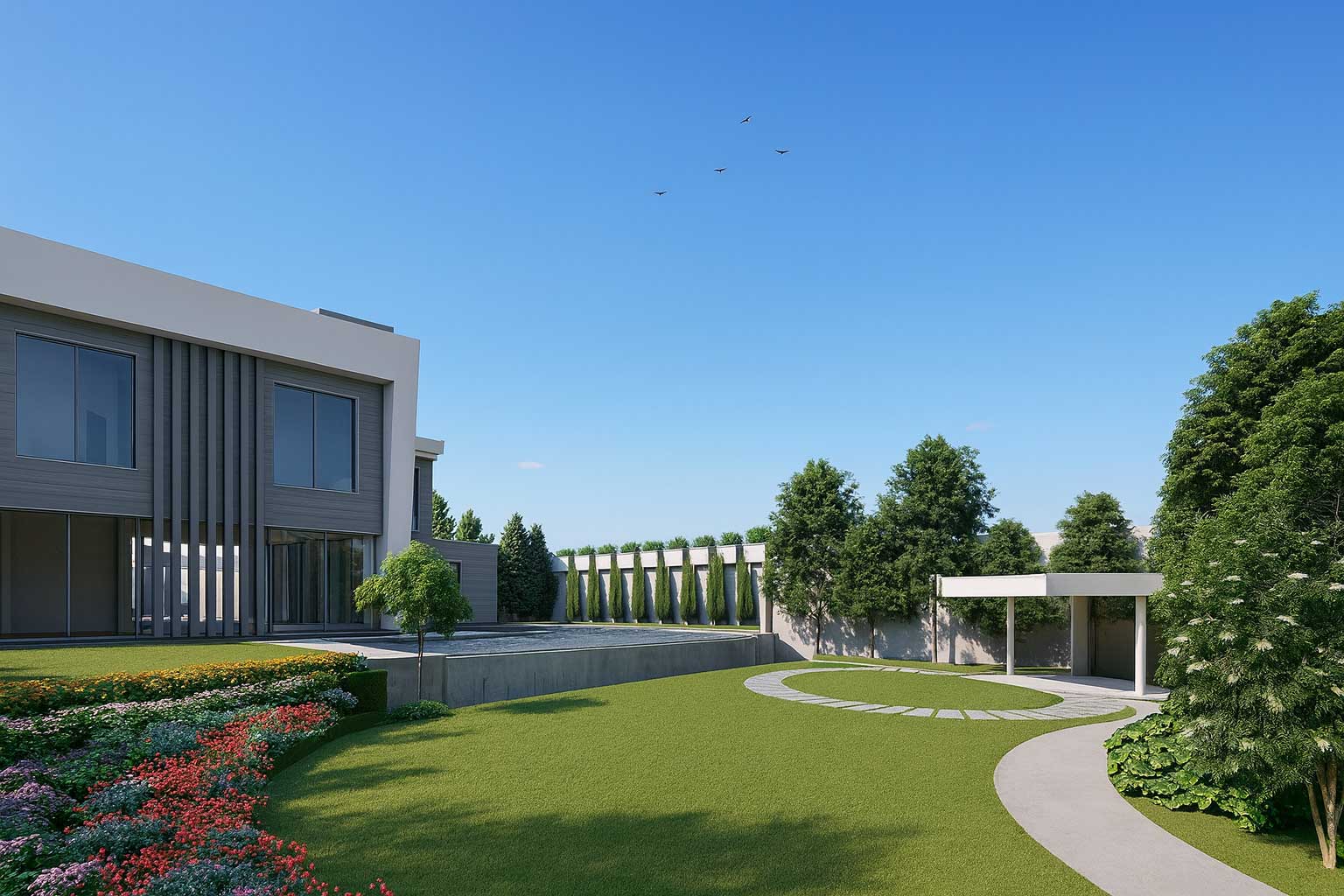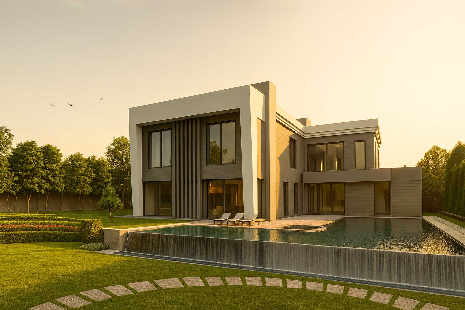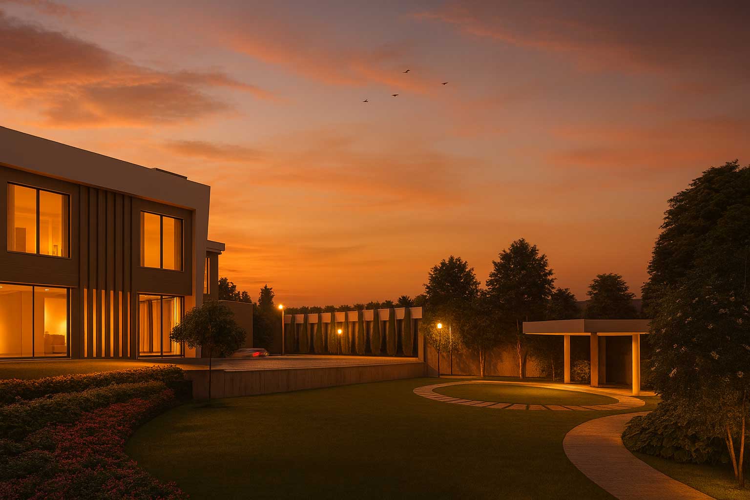 The landscape is organized as a series of soft, flowing lines—curved walkways, sculpted lawns, and low hedges—that contrast with the villa’s sharp geometry and lead residents toward key outdoor nodes. The structural system is coordinated to support long cantilevers and large openings without visible beams, while the building envelope uses high-performance glazing, insulated walls, and carefully detailed junctions to enhance thermal comfort. Housari Corp integrated architecture, structure, and building services to deliver a low-maintenance, energy-efficient villa that expresses modern luxury and clarity.